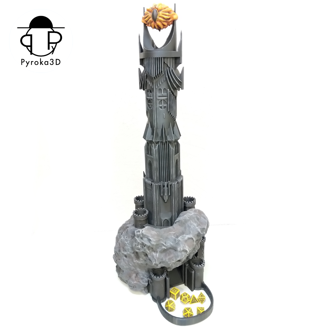 Lenke das Schicksal deiner Würfe aus den feurigen Höhen Mordors. Dieser epische, 3D-gedruckte Würfelturm basiert auf dem legendären Barad-dûr, Saurons dunkler Festung aus Der Herr der Ringe. Egal ob mitten in einer D&D-Kampagne oder als imposantes Deko-Stück – dieser Turm bringt düstere Fantasy-Atmosphäre auf deinen Spieltisch wie kein anderer.